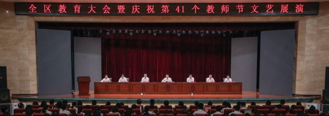 9月9日,全区教育大会暨庆祝第41个教师节文艺展演活动在区会议中心大礼堂举行,区委书记苏振华出席会议并讲话,区委副书记、区长于寿磊主持,区人大常委会主任潘清,区政协主席于洪,区领导李碧录、肖佃刚、邢乐峥出席。