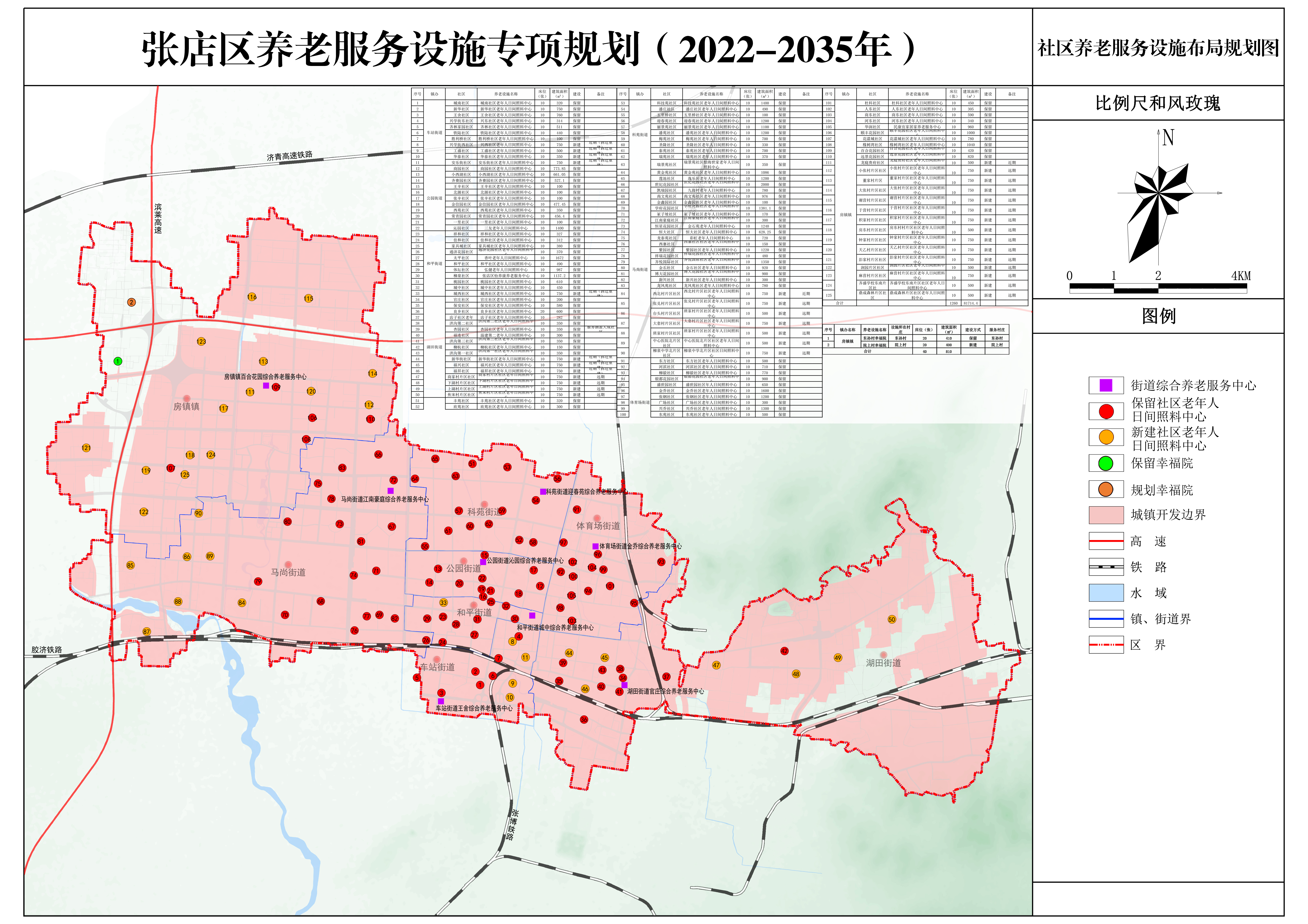 至2035年,共规划社区养老服务设施共127处。其中社区日间照料中心125处(保留91处,新建34处),幸福院2处(保留1处,新建1处)。