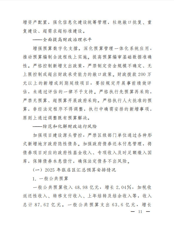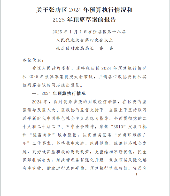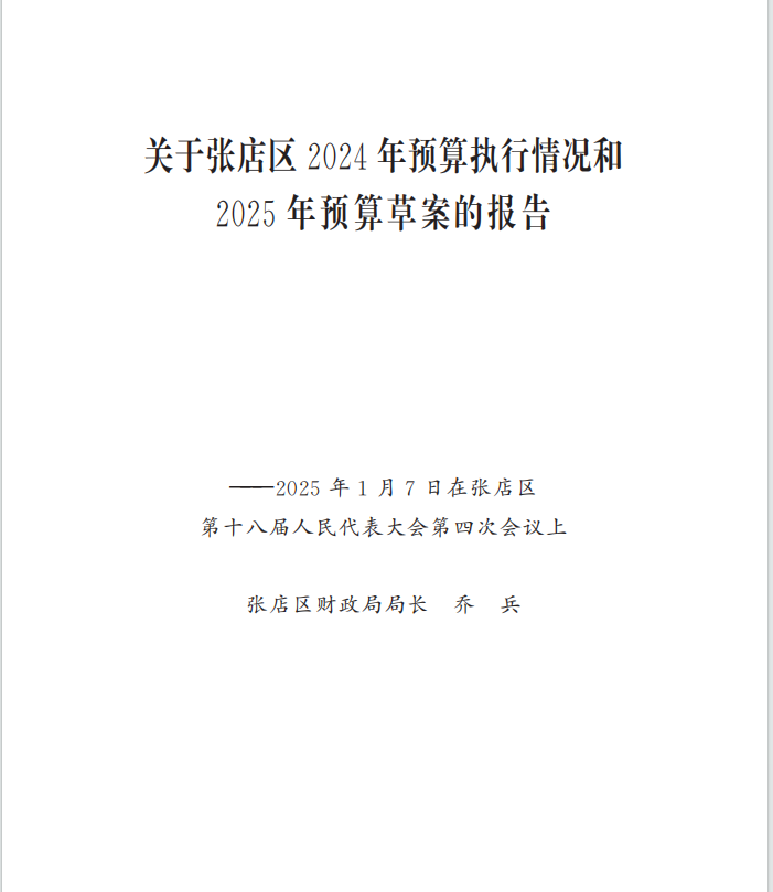 关于张店区2024年财政预算执行情况和2025年财政预算草案的报告