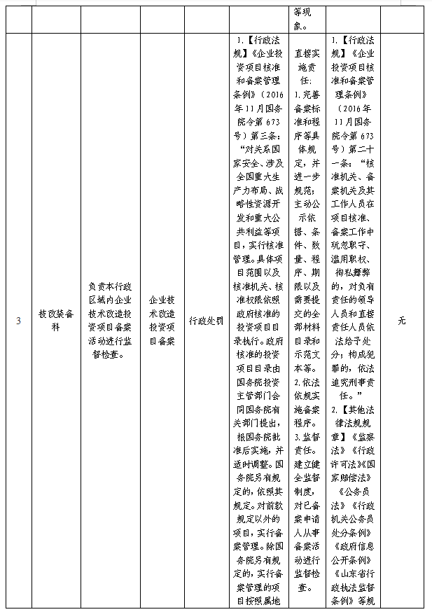 张店区工业和信息化局行政执法事项目录清单