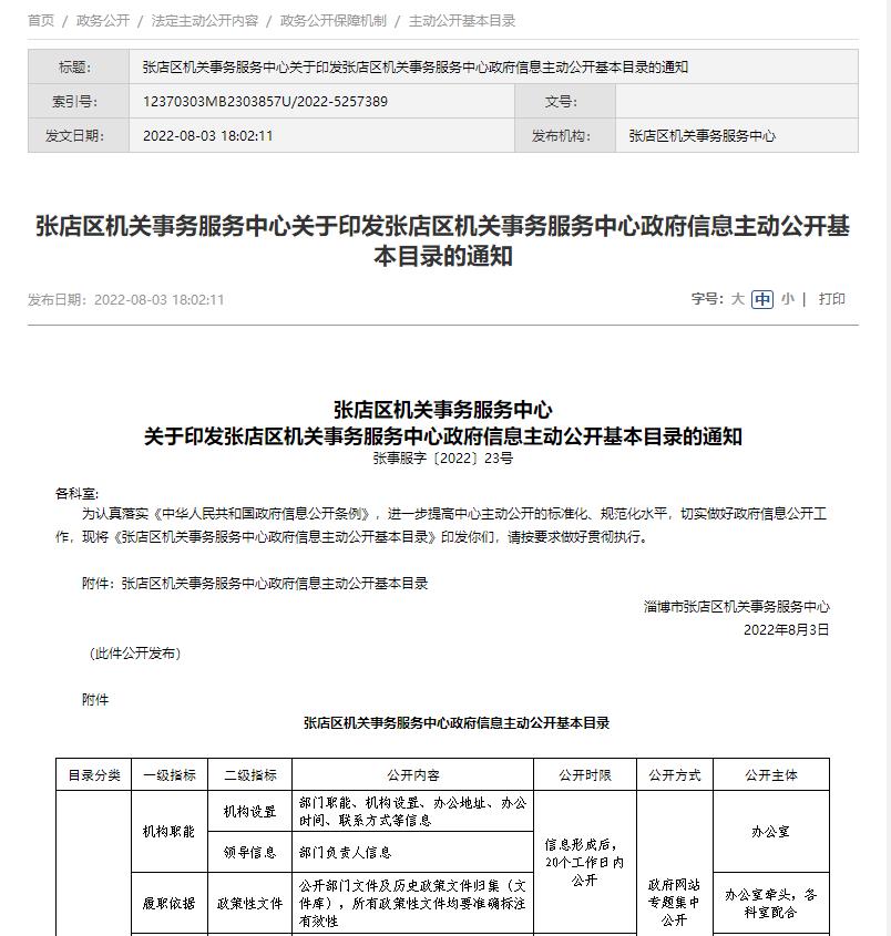 3.政府信息管理方面。一是抓好组织领导。中心主要领导高度重视政府信息公开工作,根据人员变动,及时调整了中心政务公开工作领导小组成员,确保政府信息公开时时有人抓、事事有人管、工作不断线。同时,进一步明确一名办公室人员专责专抓,中心工作例会每月调度政府信息公开工作,真正形成主要领导亲自抓、分管领导具体抓、班子成员协同抓、科室依据职责抓的齐抓共管工作格局,有力保障政务公开工作高效开展。二是抓好机制完善。积极做好政府信息定期更新工作,及时更新完善主动公开内容、政府依申请公开、政府信息年报和政府信息公开指南等内容。修订完善《淄博市张店区机关事务服务中心信息公开保密审查制度》等文件,按照“谁公开、谁负责”“先审查、后公开”“一事一审”原则,对中心在淄博市张店区人民政府网站公开的信息进行内容审核和保密审查,严格执行政府网站“三审三校”机制,严把信息发布政治关、政策关和保密关,持续提升稿件质量,确保信息公开安全、准确、及时。三是抓好“回应关切”。结合机关事务工作实际,围绕服务对象所需和社会群众所盼,在部门会议、预算公开、决算公开、政府集中采购、建设工程等领域做到应公开尽公开。履行好信息公开义务,及时回应社会关切,聚焦干部职工、服务对象最关心关注的信息作为政务公开的重点,加大公共机构绿色出行、公共机构反食品浪费、公共机构生活垃圾分类等群众关注领域公开力度,加强相关政策信息的传播和宣传,确保社会公众有效获取并及时知晓公开的政府信息。