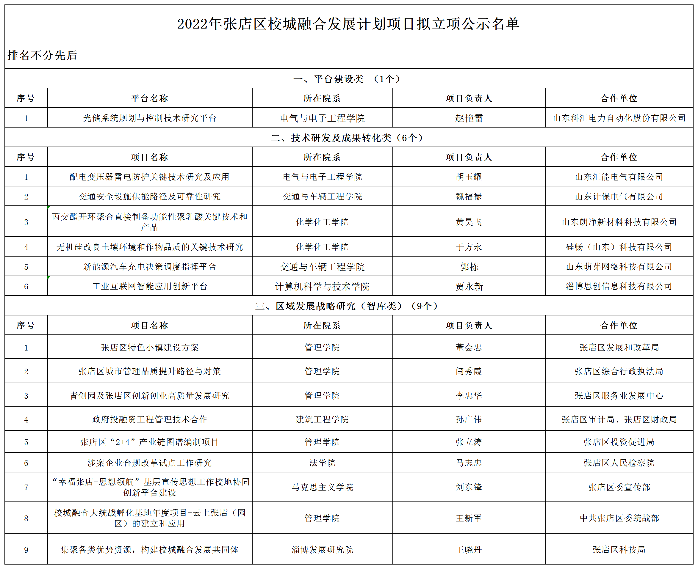 附件:2022年张店区校城融合发展计划拟立项项目名单