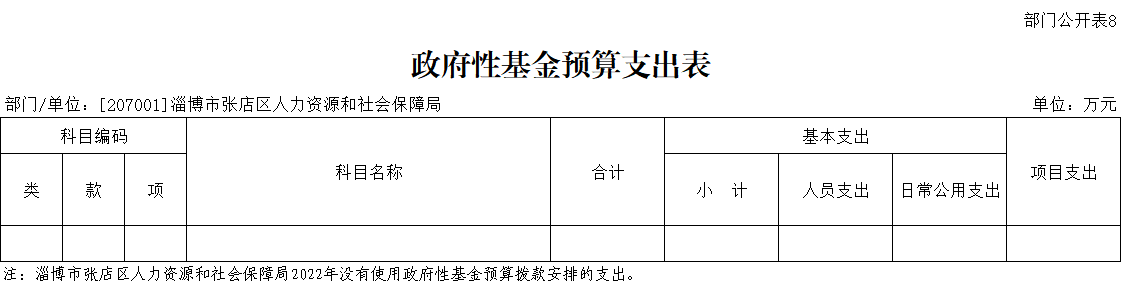 淄博市张店区人力资源和社会保障局2022年没有使用政府性基金预算拨款安排的基本支出。