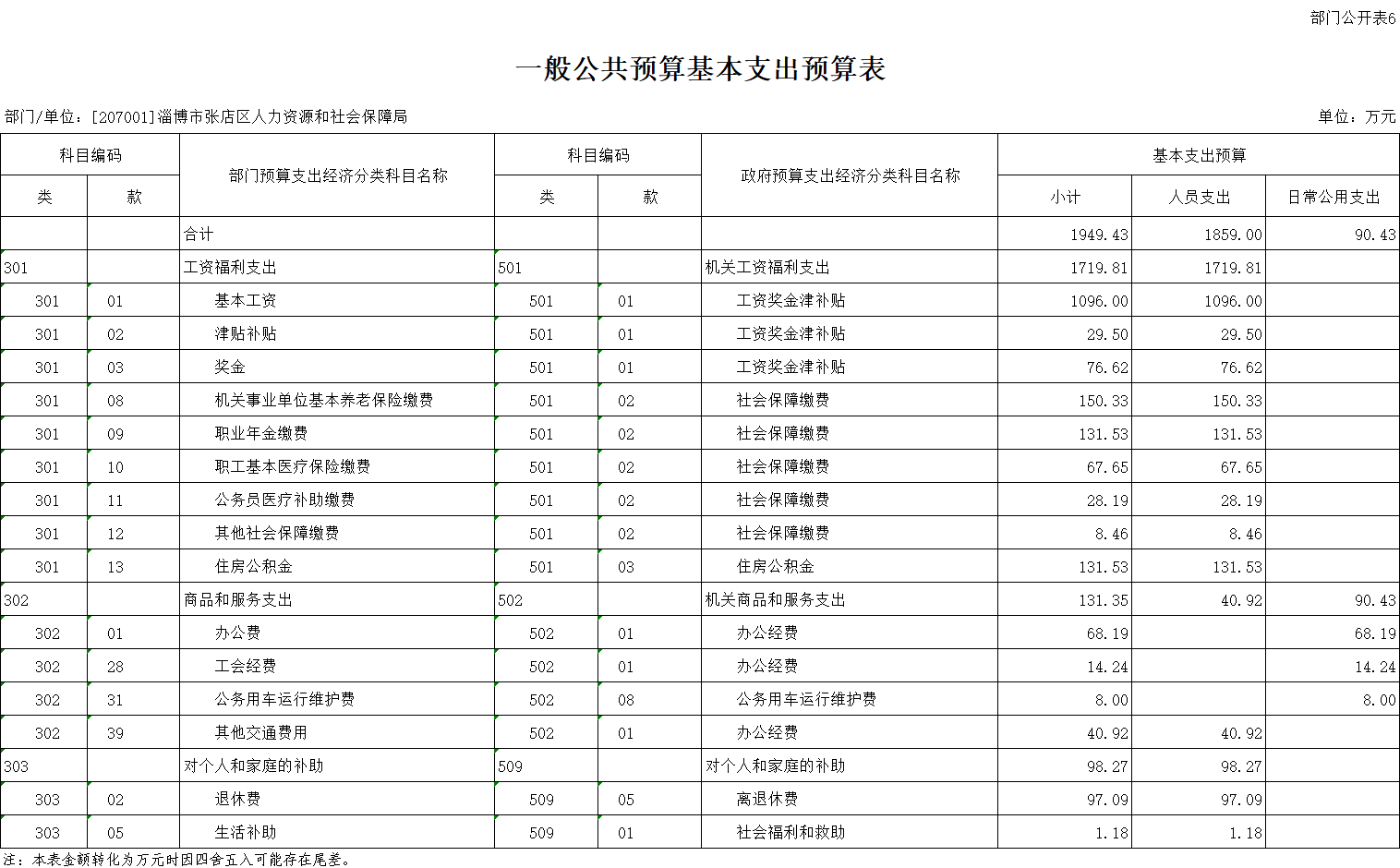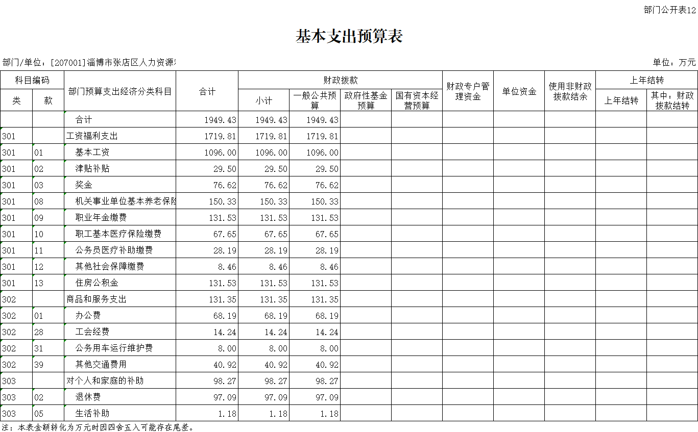 淄博市张店区人力资源和社会保障局2022年一般公共预算拨款安排的基本支出1949.43万元。主要用于: