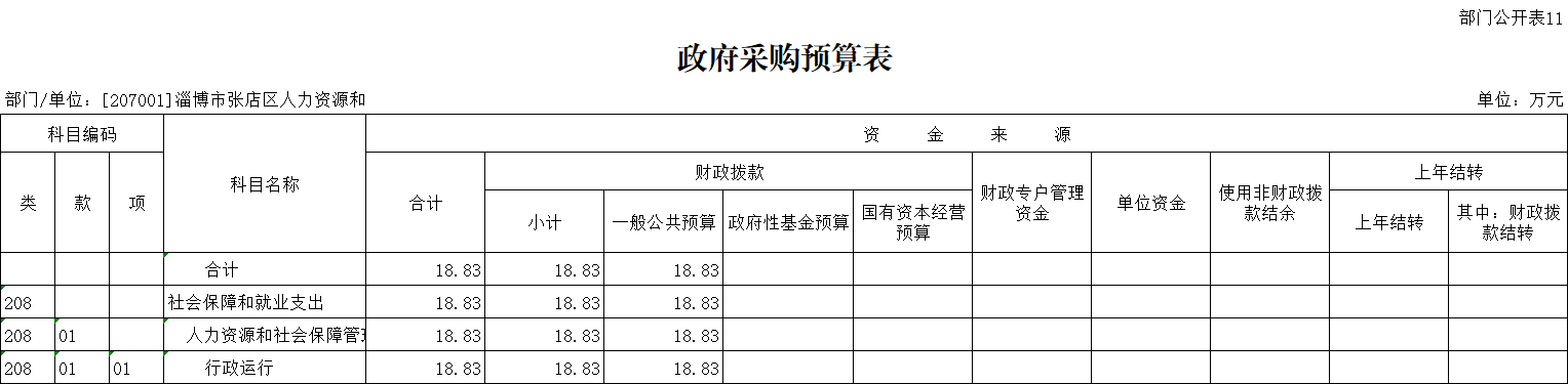 2022年淄博市张店区人力资源和社会保障局单位预算