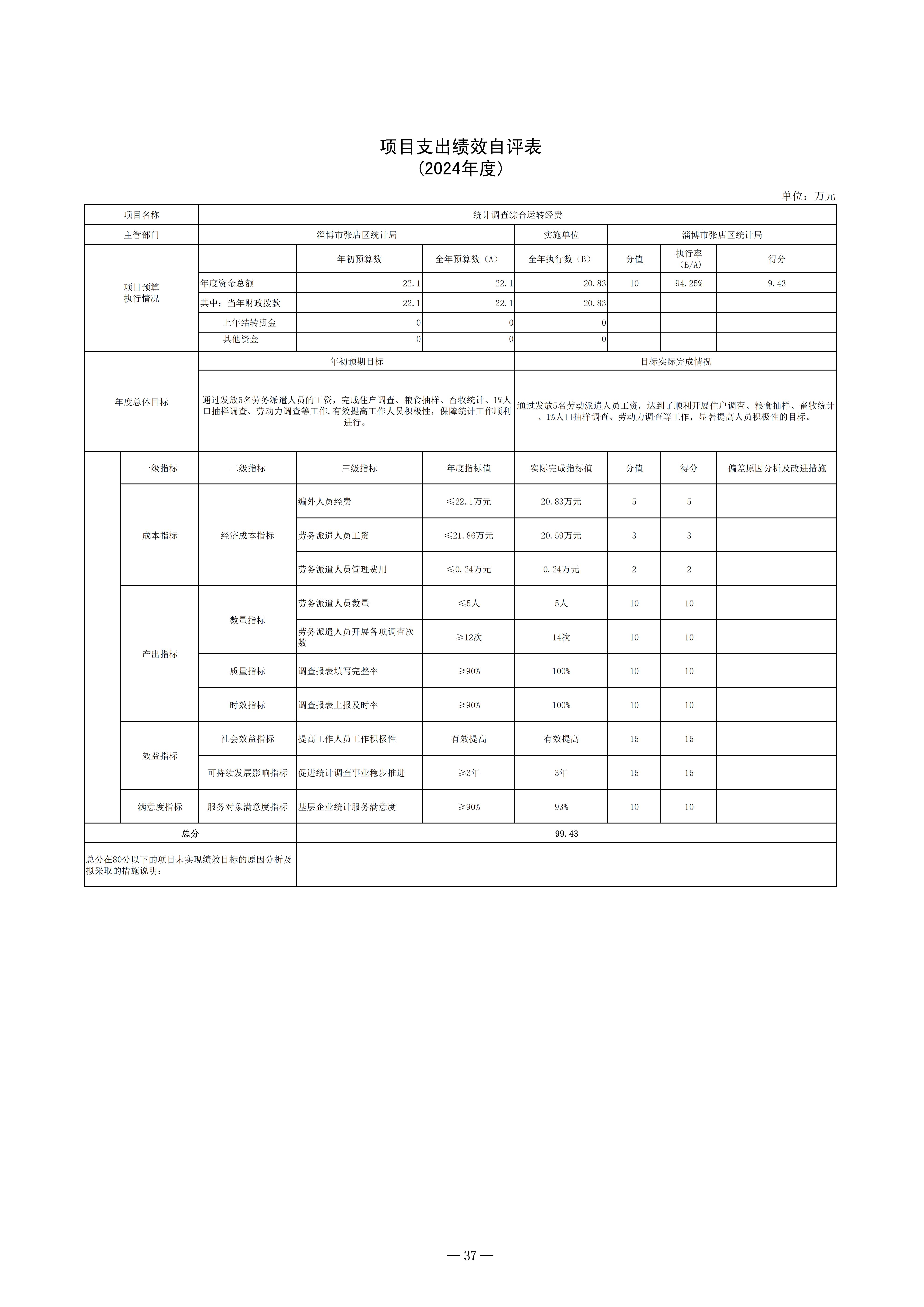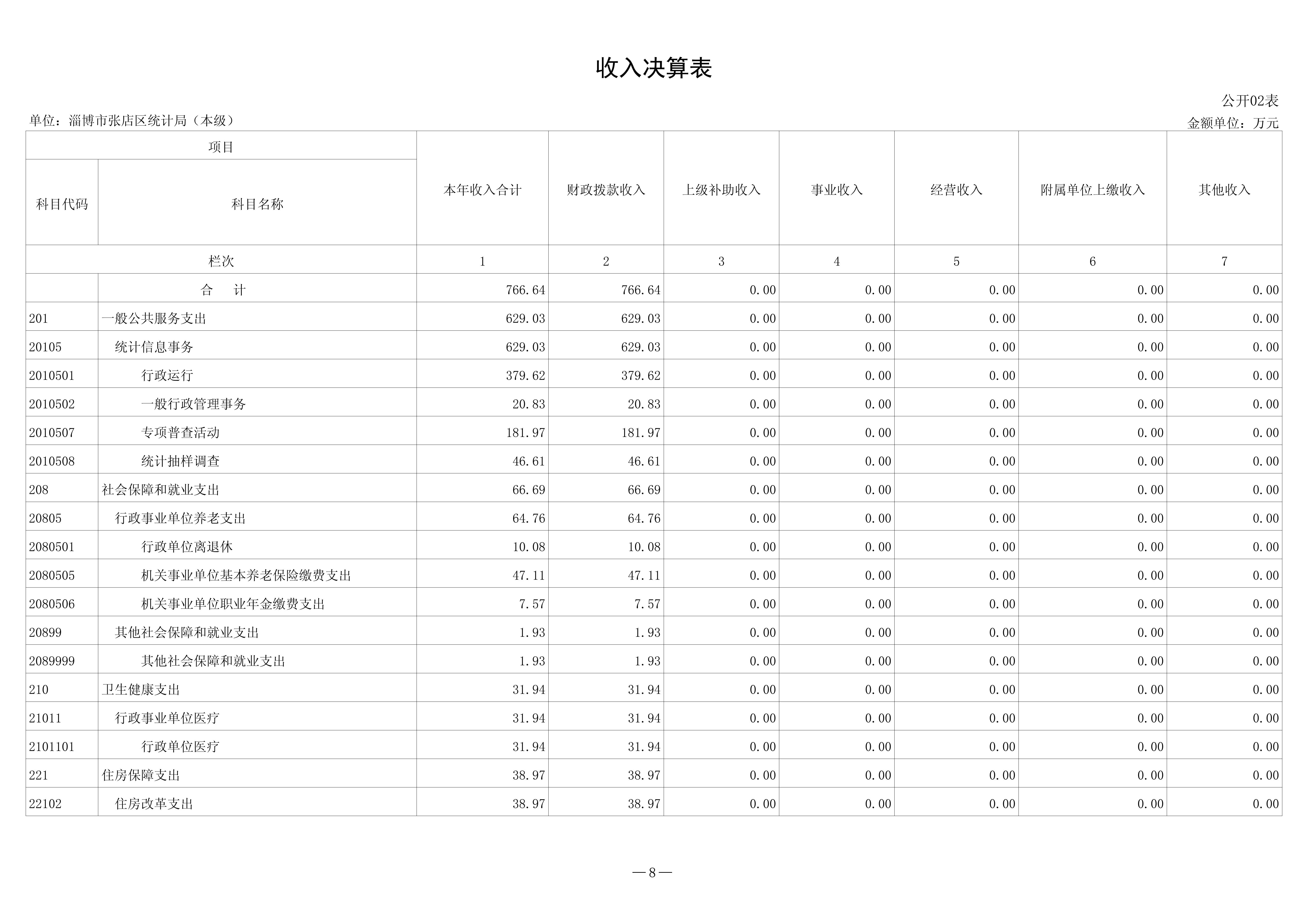 2024年度淄博市张店区统计局本级决算