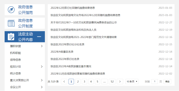 张店区文化和旅游局坚持“公开为常态,不公开为例外”的原则,通过张店区人民政府门户网站公开政务信息,扎实做好政府信息公开工作。根据《2022年张店区政务公开工作要点》要求,对本部门政务公开情况进行详细梳理,细化政务公开目录,优化政务公开内容分类,大大方便了群众信息查找。同时目录设置更加注重系统化,推动本部门管理服务更加透明规范,确保政务公开工作规范、高效、便民。