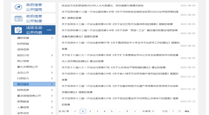 2.2022年度人大代表建议和政协委员提案办理情况。张店区文化和旅游局共收到人大代表建议4件,政协提案15件,所有建议提案均已按期办结。人大代表建议和政协委员提案内容主要涉及红色文化、文化人才、文化遗产、旅行社纾困解难等众多市民群众关注的热点问题。人大代表建议和政协委员提案办理情况均在淄博市张店区人民政府门户网站公开发布。